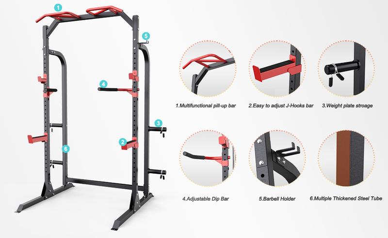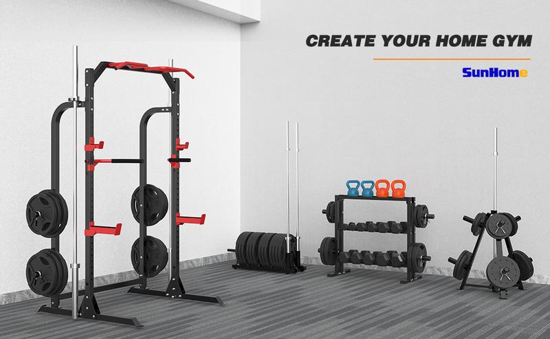 Sunhome Power Cage Squat Rack, Multi-Functional Power Rack with J-Hooks, Dip Handles, Weight Plate and Olympic Bar Storage Home Gym