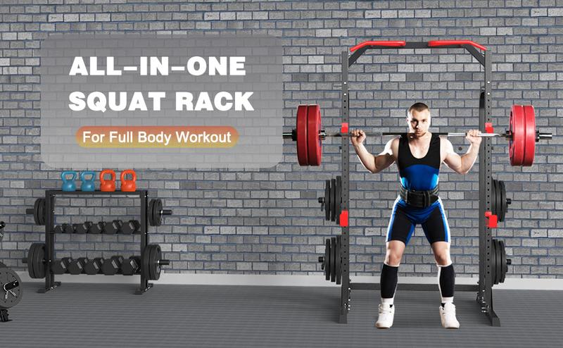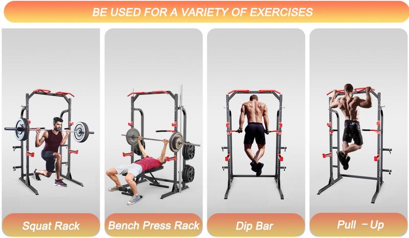 - ALL-IN-ONE STATION -Any variation of Olympic weight bars can be used with power racks, which also provide support at a variety of heights. power rack cage not only can be performed on the mainframe including squat, bench press, pull up /chin up, dip station, push up etc.